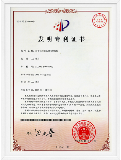用(yòng)于保險箱上(shàng)的(de)門(mén)栓機₽∑(jī)構