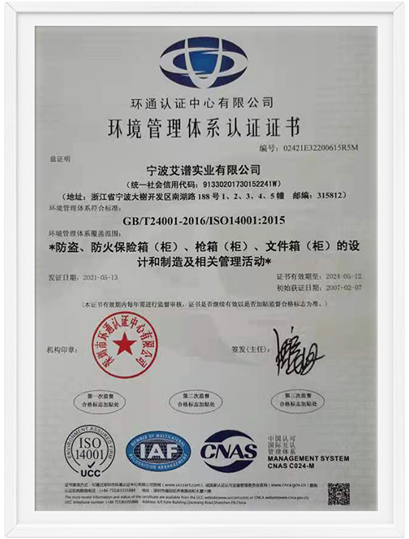 環境管理(lǐ)體(tǐ)系認證證書(shūα↔"↕)
